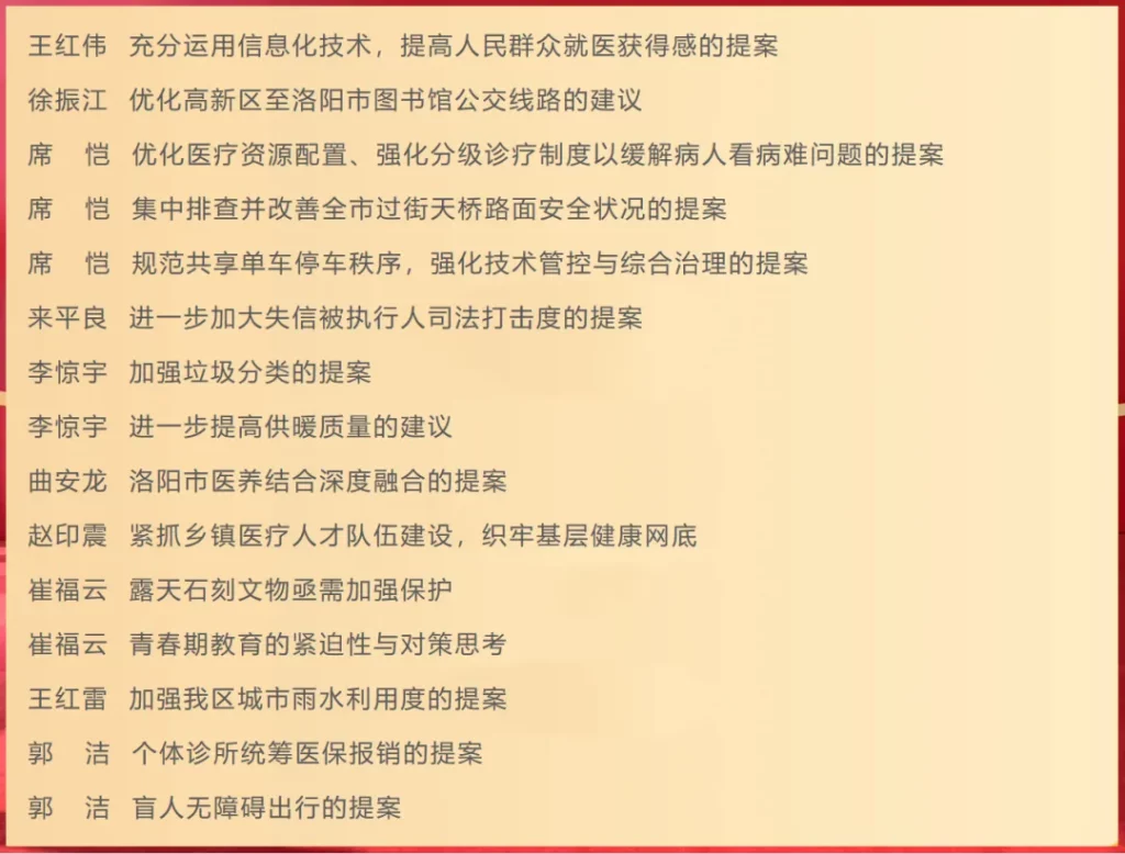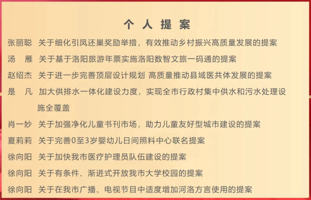 本次会议,农工党洛阳市委会提交集体提案6件,个人提案24件,意见建议10件。