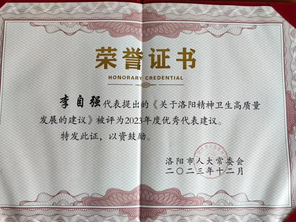 大会上,农工党洛阳市委会提出的《关于洛阳市乡村基层医生订单培养的提案》被评为优秀提案;农工党洛阳市委会报送的《HPV疫苗“一苗难求“》被评为2023年度社情民意信息优秀篇目;市人大代表、农工党洛阳市委会副主委、市第五人民医院院长李自强提出的《关于洛阳精神卫生高质量发展的建议》被市人大常委会评为2023年度优秀代表建议;市人大代表、农工党市委会委员、河科大二附院副院长孙文青被市政协评为2023年度反映社情民意信息工作先进个人;市政协委员、农工党洛阳自贸区支部主委徐振江被市政协评为2023年度优秀政协委员。